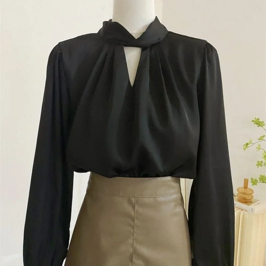 Blouses Women Long Sleeve Temper Office Lady Vintage French Elegant Pure Clothing Aesthetic Designer High Street Minimalist Chic