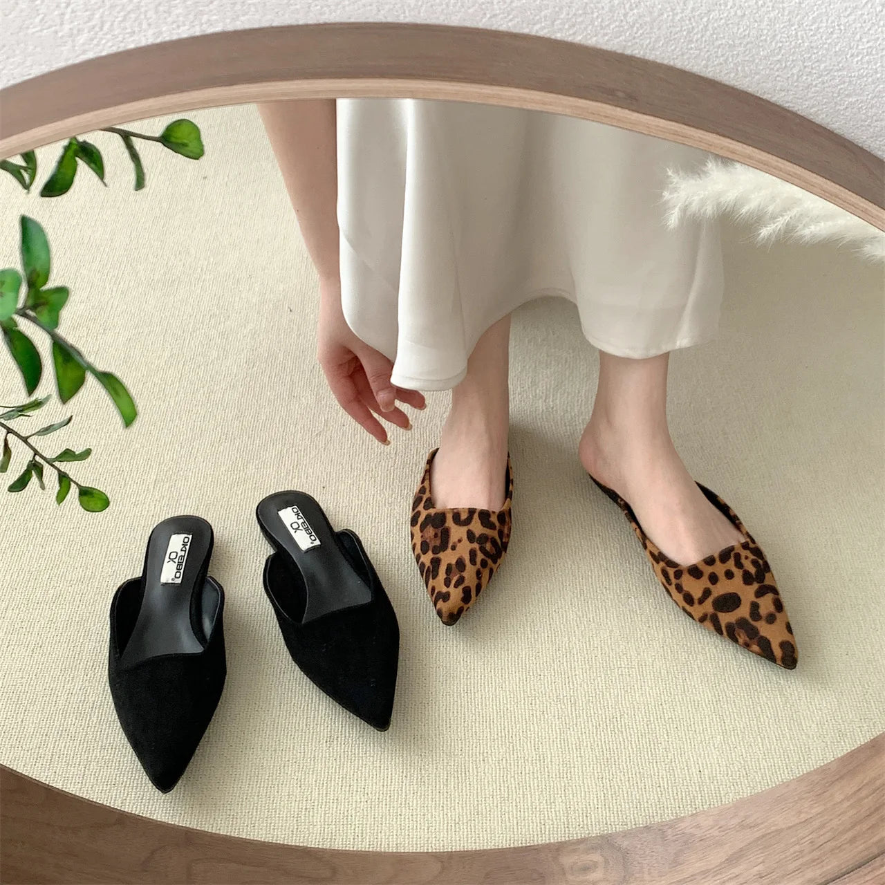 Flat Leopard Print Casual Pointed Toe Mules