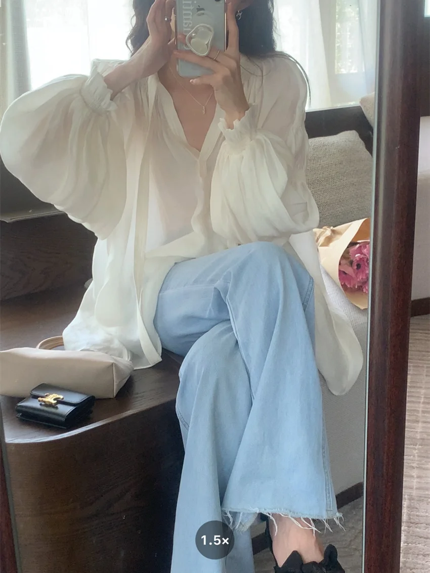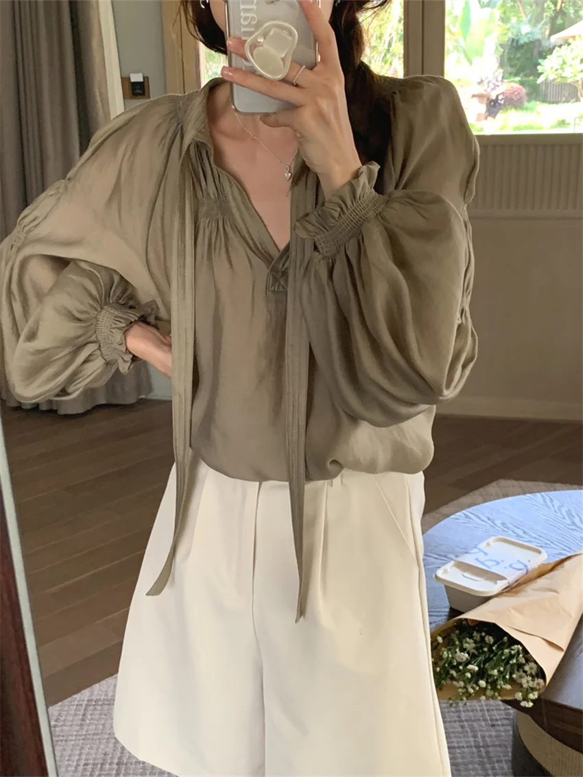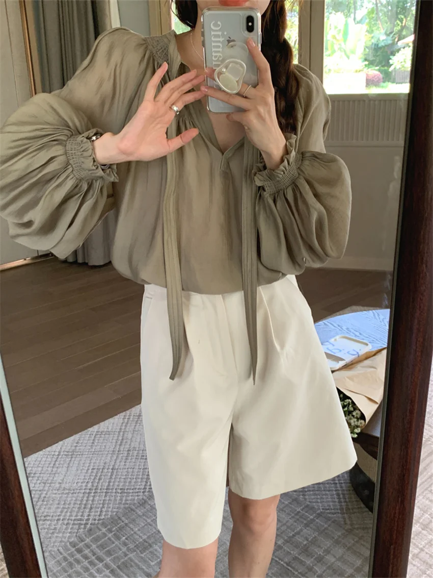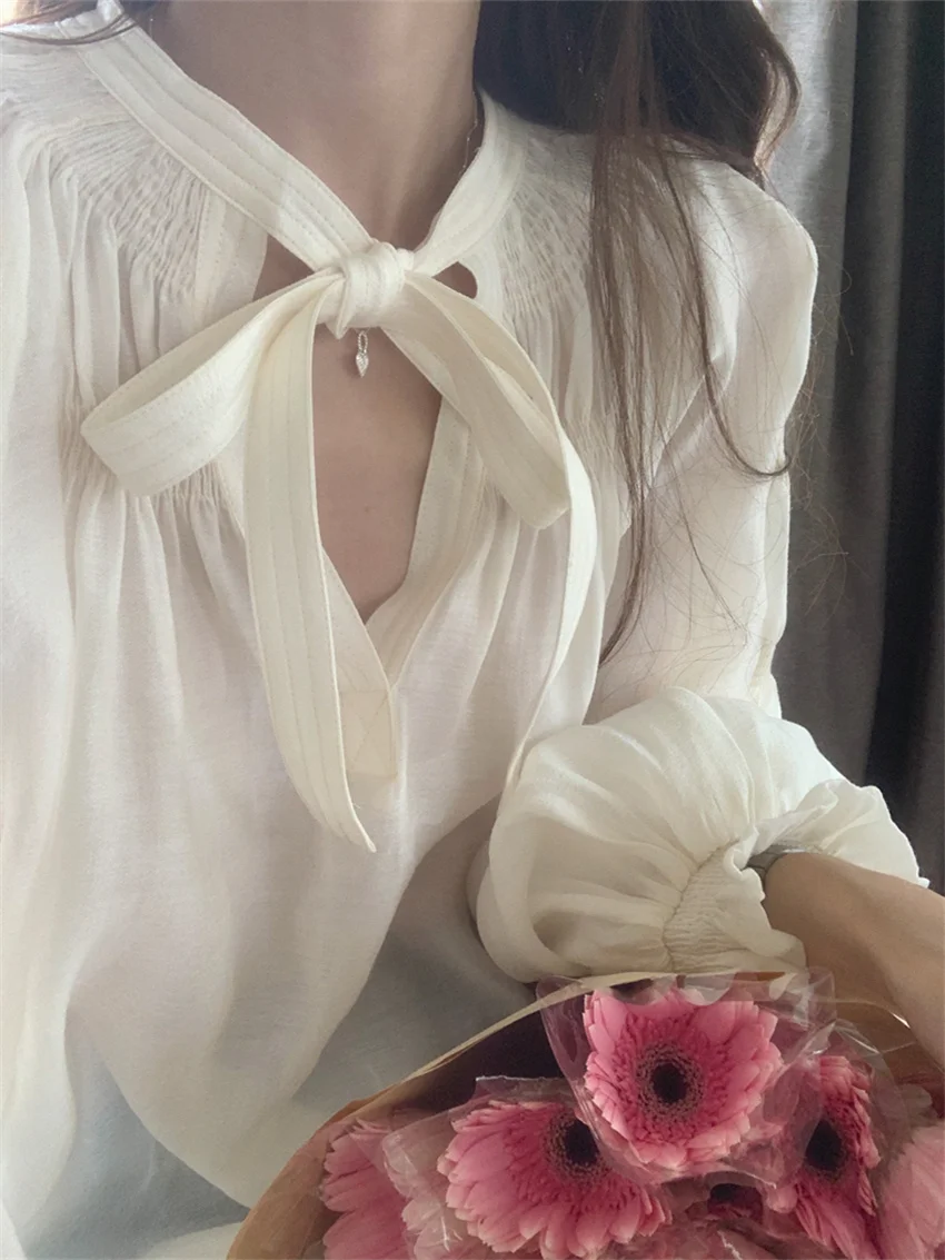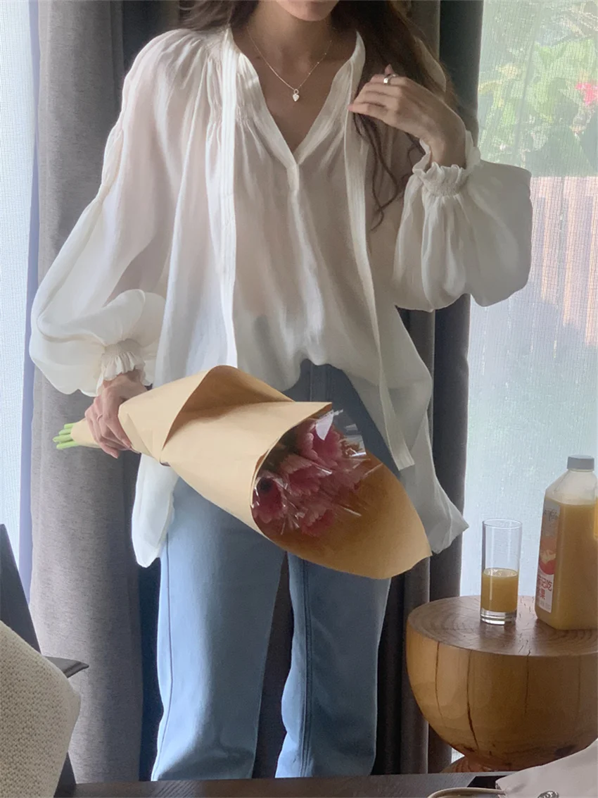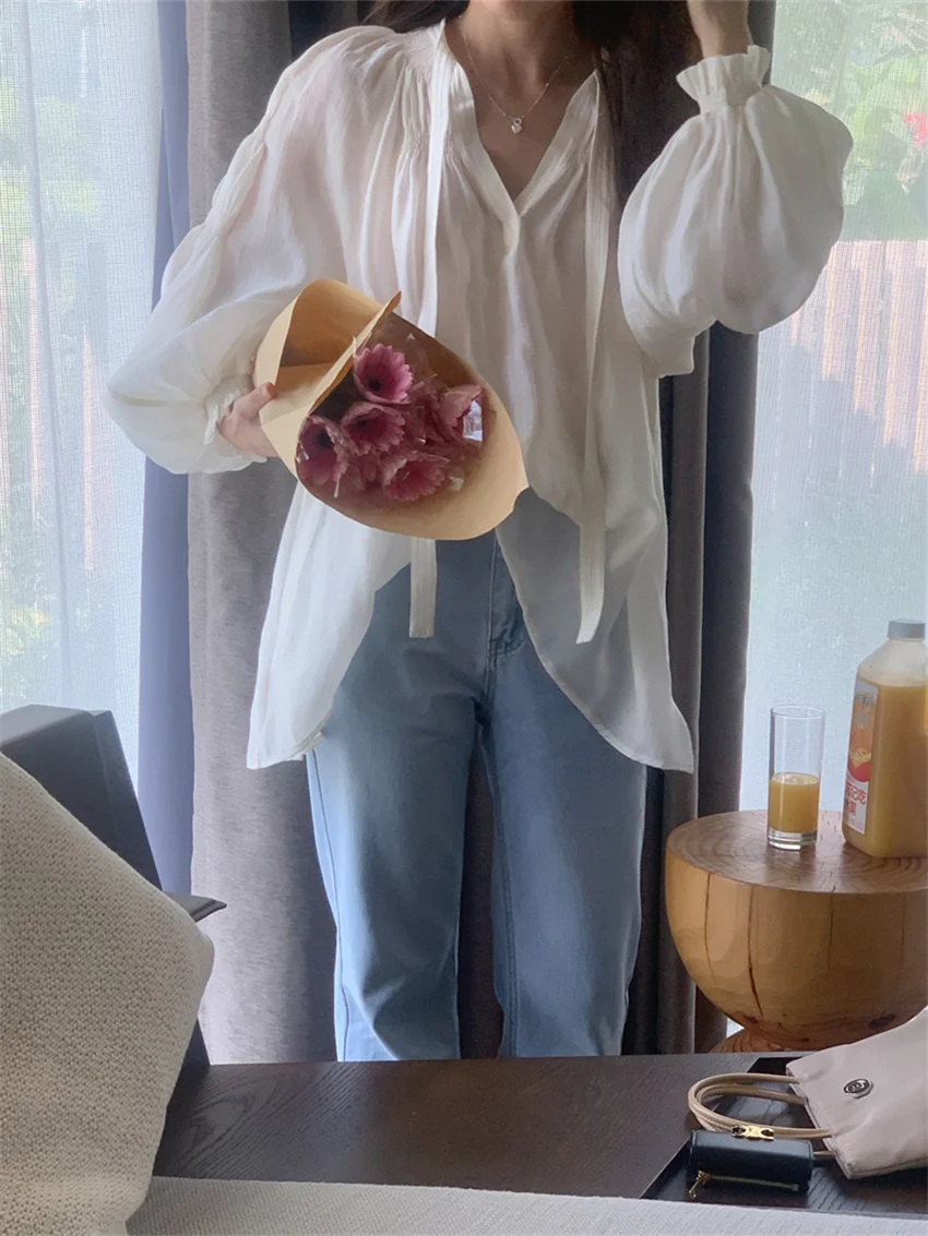 Alien Kitty Spring Blouses Sweet OL Women Chic Fashion 2023 Fairy Elegant V-Neck Gentle New Casual Office Lady High Street