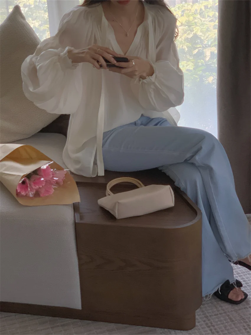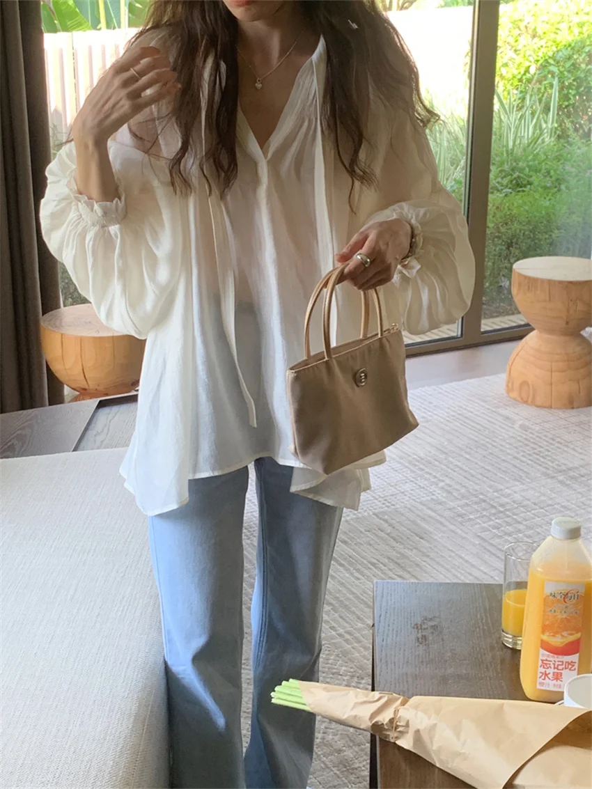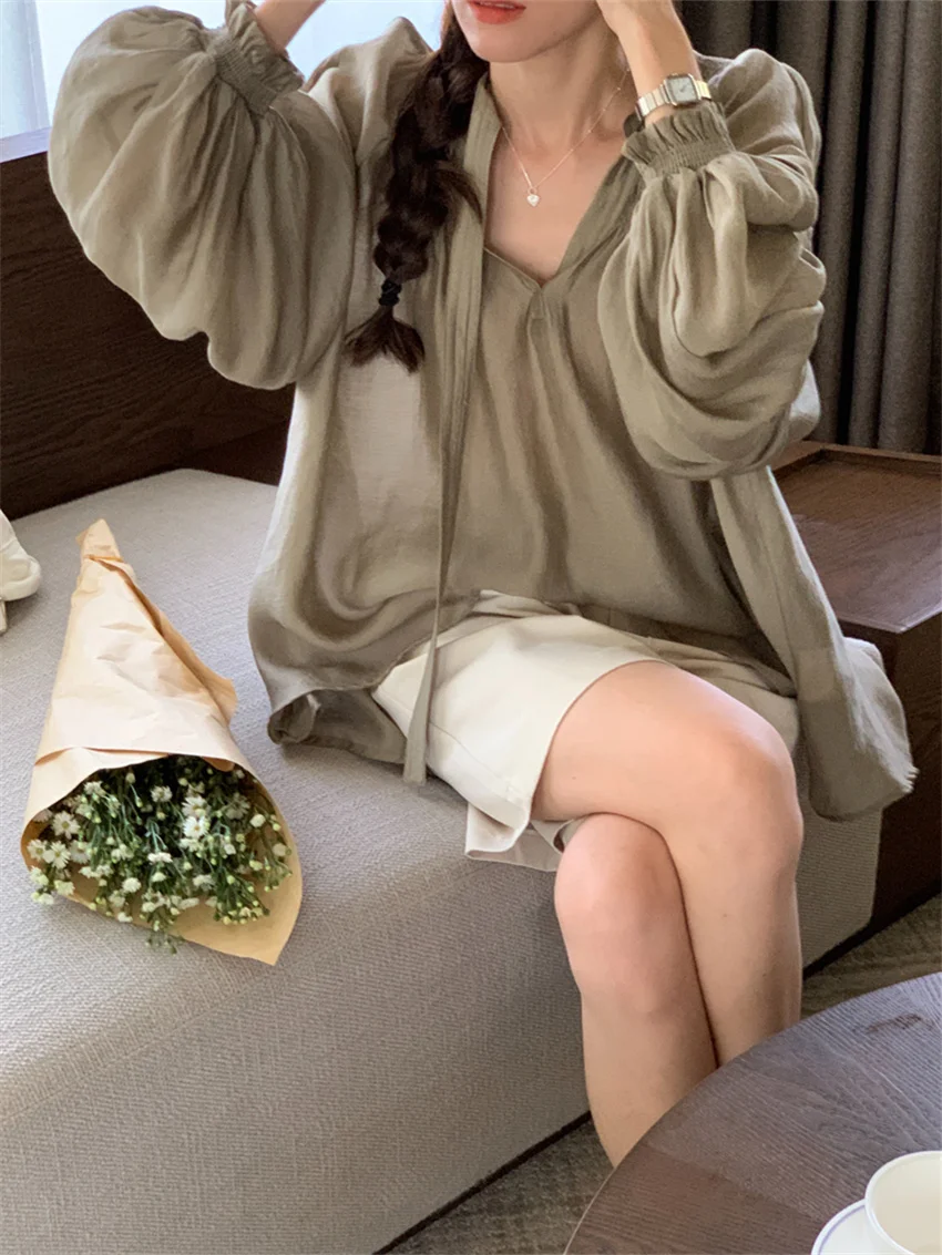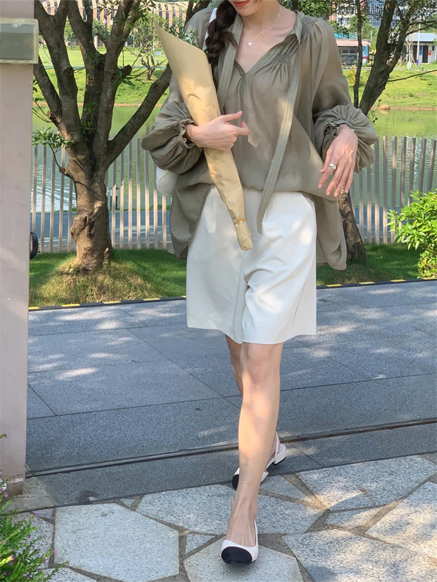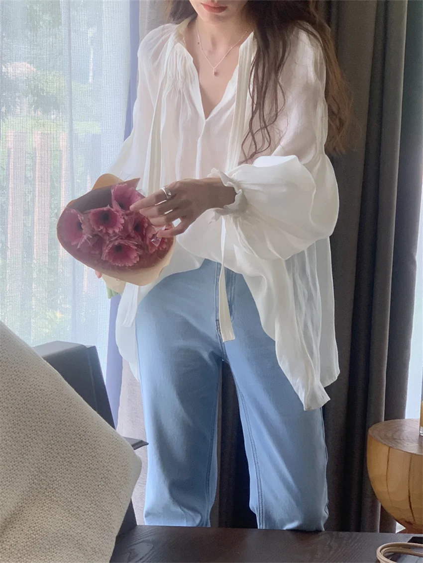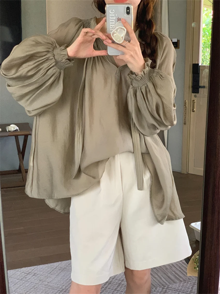 Alien Kitty Spring Blouses Sweet OL Women Chic Fashion 2023 Fairy Elegant V-Neck Gentle New Casual Office Lady High Street