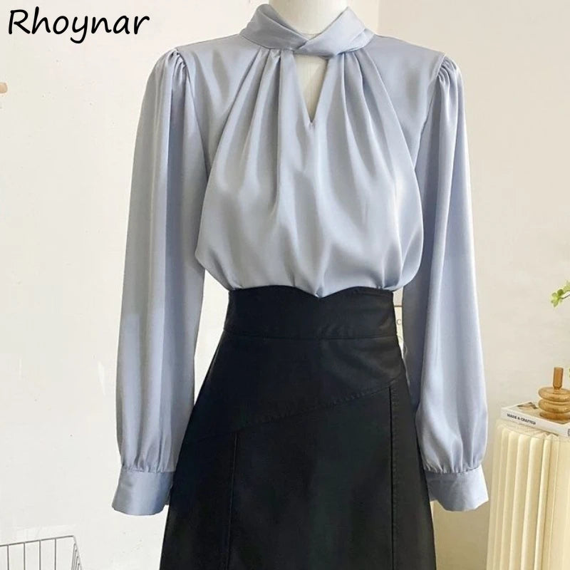 Blouses Women Long Sleeve Temper Office Lady Vintage French Elegant Pure Clothing Aesthetic Designer High Street Minimalist Chic